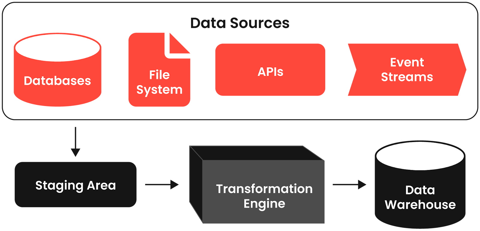 | Definition | ETL stands for extract-transform-load, where a separate process transforms data before loading it to the destination database or warehouse | ELT stands for extract-load-transform, where transformation happens in the destination database, warehouse, or lakehouse platform. |